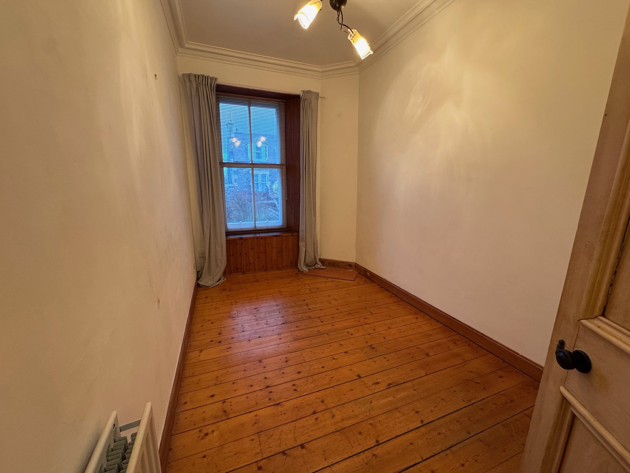 This two-bedroom ground-floor flat is brought to the rental market in excellent decorative order, enjoying bright and spacious interiors finished in neutral tones. The lovely home forms part of a traditional, C-listed building which is a convenient location in the heart of the Peebles conservation area. It offers period charm and modern styling, and comes with a private front garden and a communal gardens to the rear.. The accommodation comprises of a galley style kitchen with appliances, the bathroom features a white 3 piece suite, an overhead shower and a combination of tongue-and-groove panelling, white décor, and easy-to-clean wet walling. There are 2 double bedroom front and rear both offering spacious accommodation. The property benefits from, gas central heating and stripped wooden flooring.