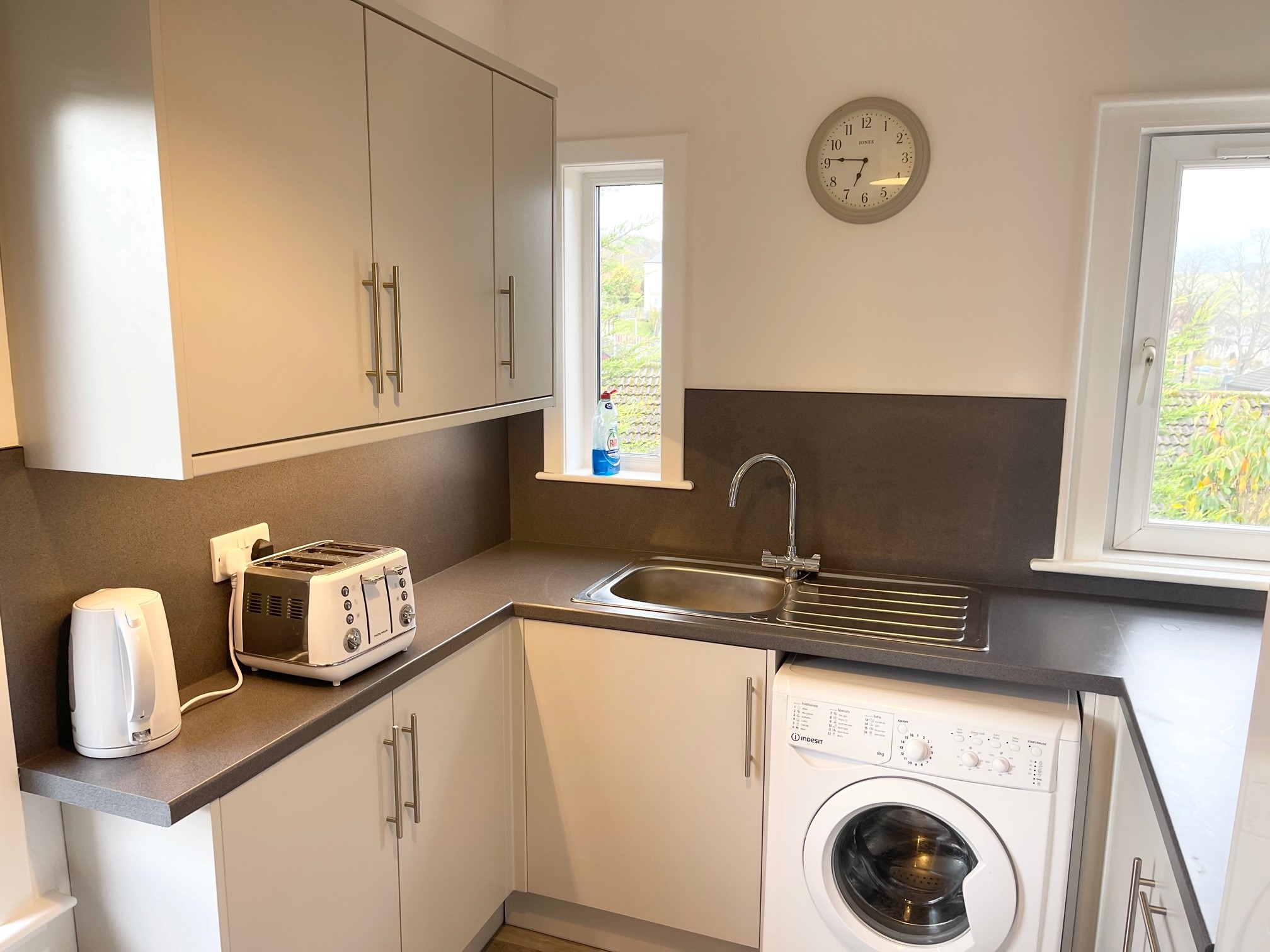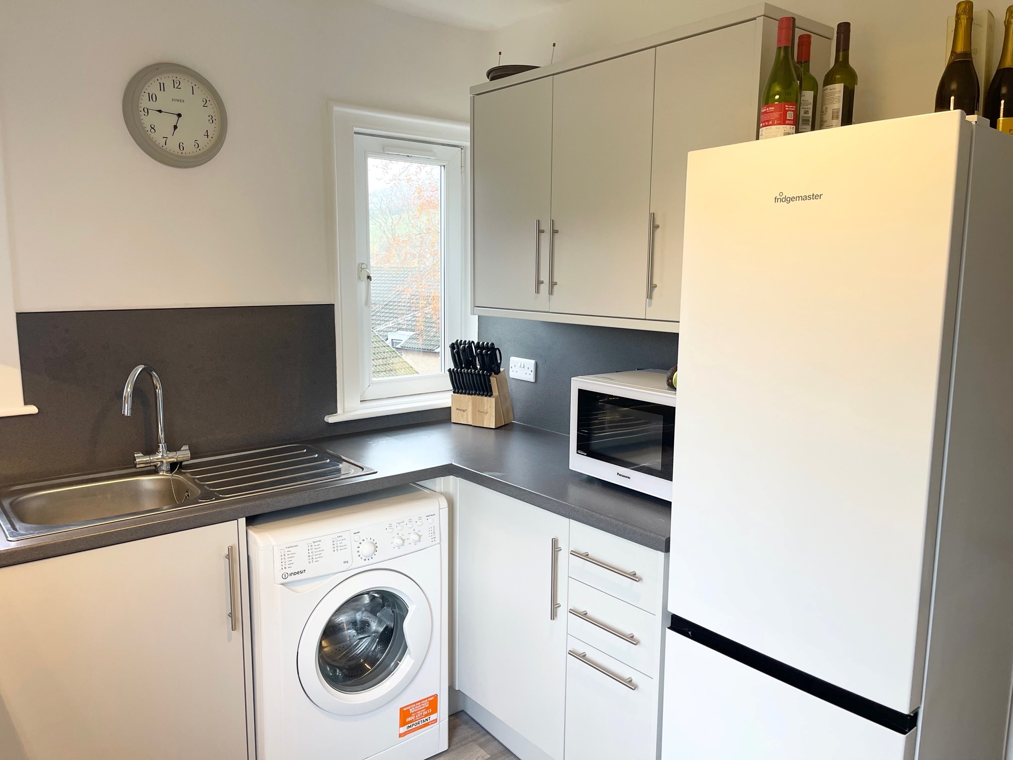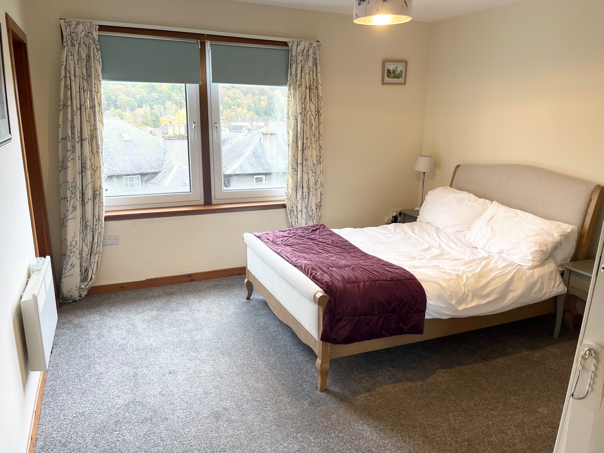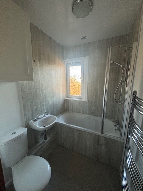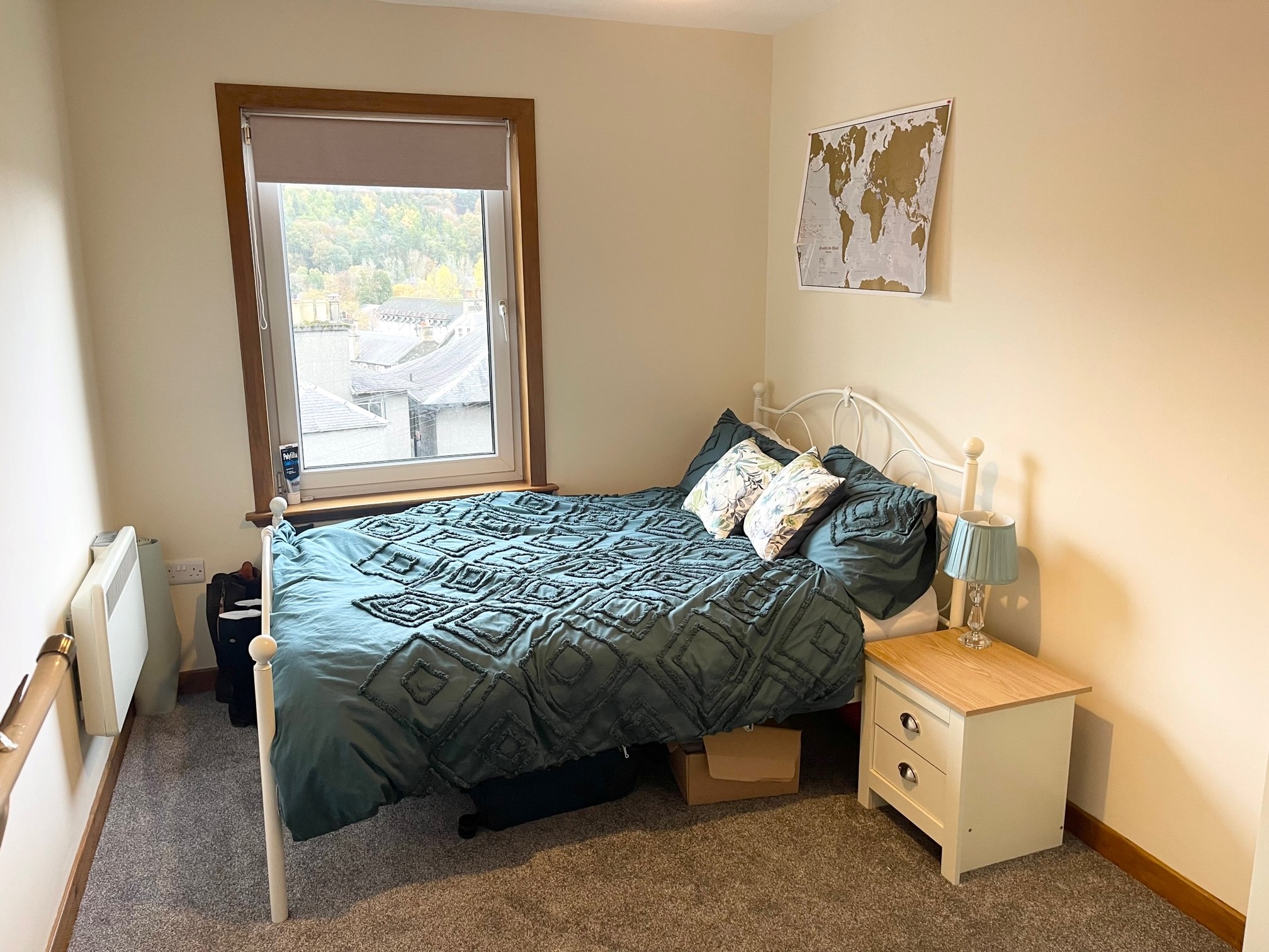 This is a spacious 2 bedroom UNFURNISHED first floor flat in a popular residential area of Peebles. The property comprises of a lounge with wood burner, 2 double bedrooms, a modern kitchen and bathroom with shower over bath. The property offers a large amount of storage in the attic space. There is also a large patio area and stone outbuilding, with power, suitable for bikes, storing logs etc.