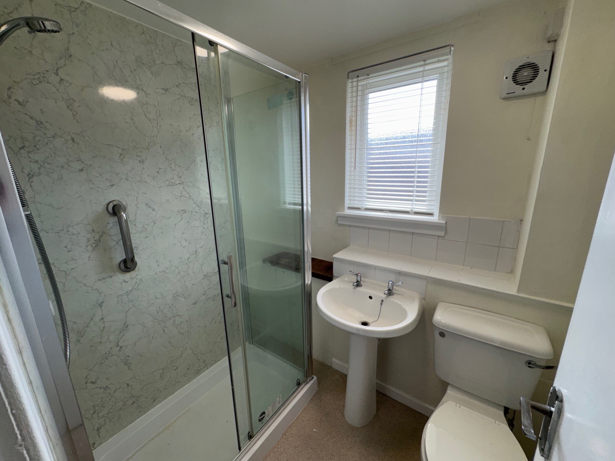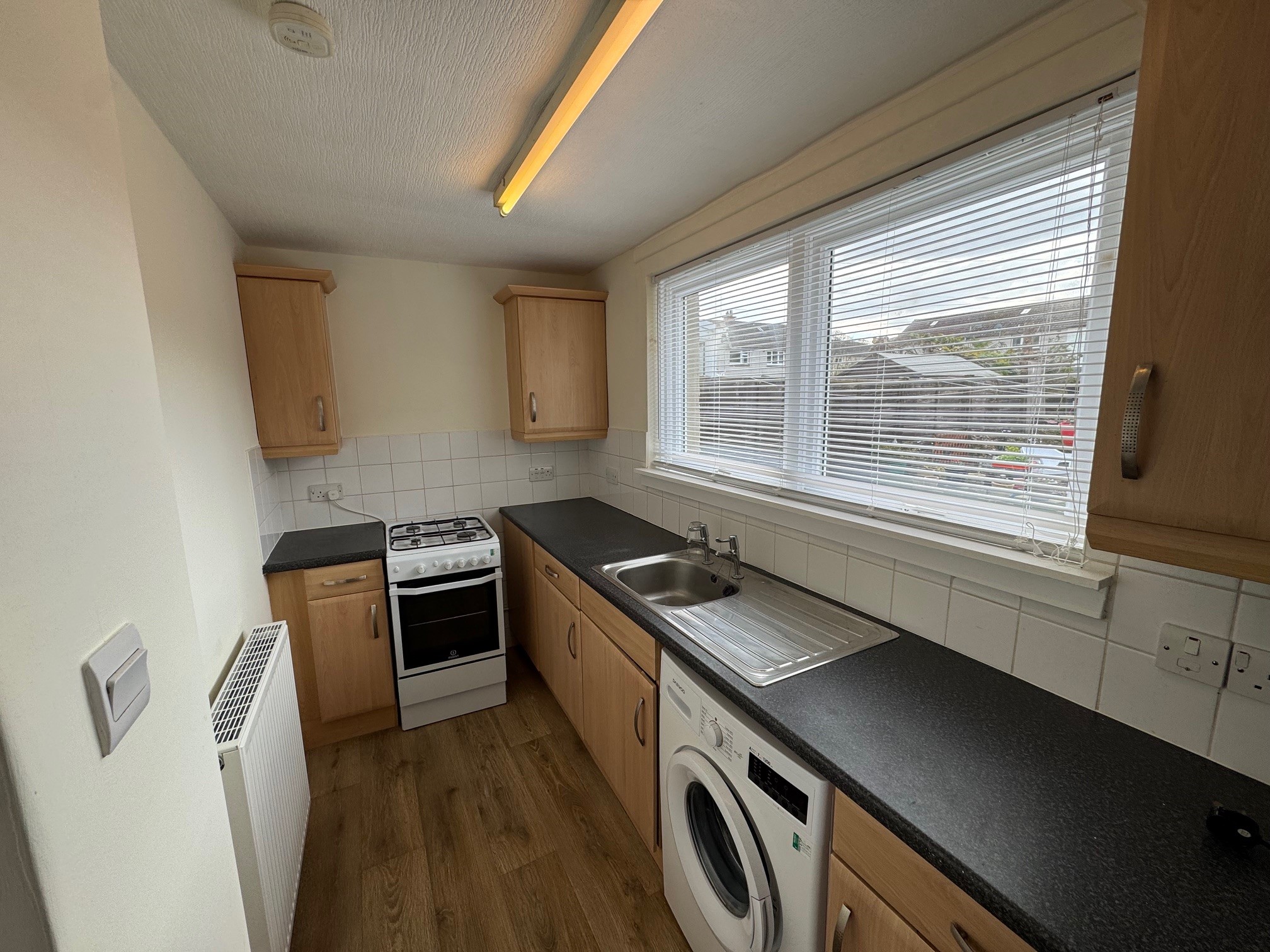 A well presented one bedroom ground floor flat available to rent in the popular Town of Peebles. The property has recently been tastefully decorated in neutral colours and offers spacious living with a large lounge, fully fitted kitchen with white goods, modern shower room, double bedroom with built-in sliding wardrobes and a large storage cupboard.